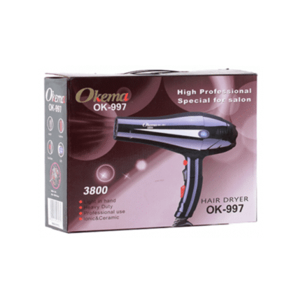 وصف المنتج تمتعي بمظهر شعر جميل وانسيابي مع مجفف الشعر الاحترافي من اوكيما. حيث يمكنك التحكم بدرجة الحرارة. بالإضافة إلى