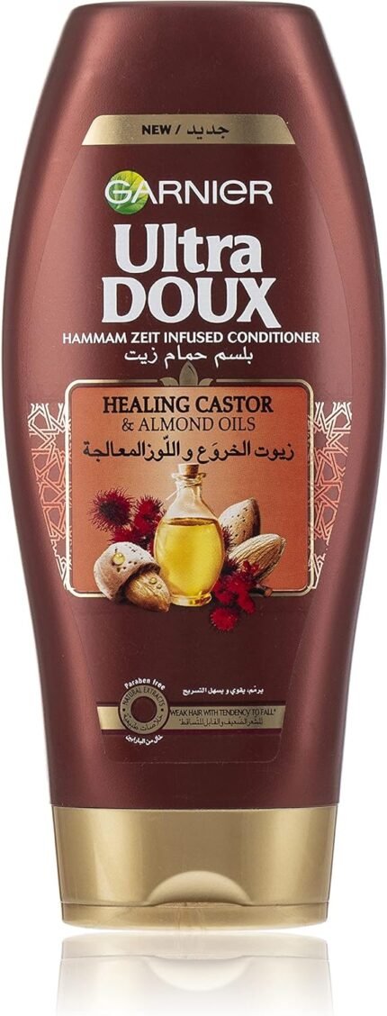 بلسم مقوي للشعر من جارنييه الترا دوكس بزيوت الخروع واللّوز 400 مل