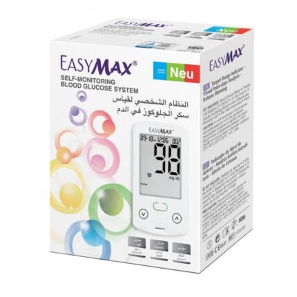 جهاز قياس السكر ايزي ماكس سهل الاستخدام ويتميز بشرائط بدون ترميز فقط ادخل الشريط في الجهاز وابدأ القياس كما انه يحتاج عينة دم صغيرة جدا لا تتجاوز 0.6 ميكرو لتر بالإضافة لنظام التنبيه في حالة عدم كفاية العينة كما يحتوي على ذاكرة كبيرة تتسع ل 480 قراءة وذلك لحفظ النتائج والقدرة على استرجاعها ومعرفة تاريخ القياس مما يساعد في العلاج.