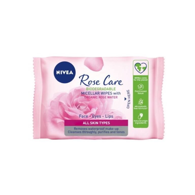 نيفيا، مناديل ميسيلار، ماء الورد، لجميع أنواع البشرة – 25 قطعة