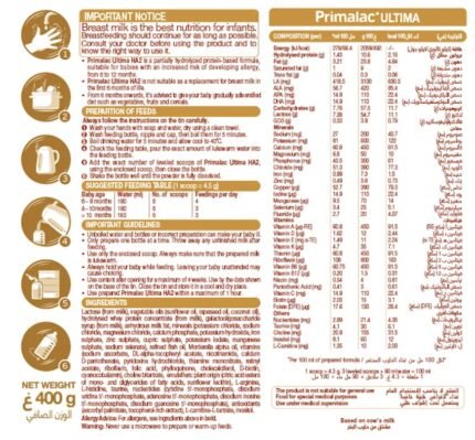 بريمالاك التيما اتش ايه 2 للتحكم ف حساسية حليب الأطفال 400 جم