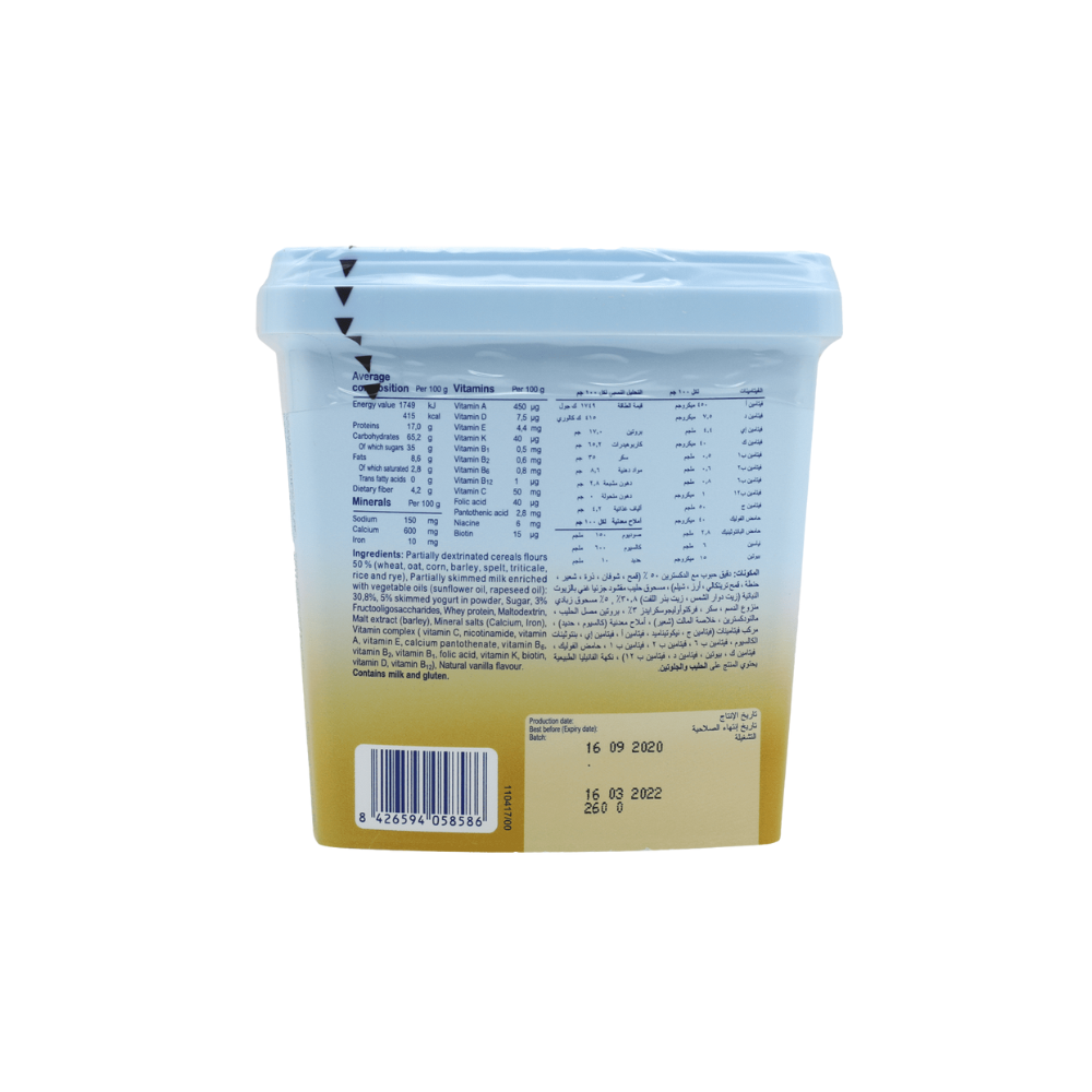 - الحبوب الغذائية الجافة التكميلية للرضع والأطفال من الشهر الرابع مع تأثير بيفيدوس – الحبوب مع حليب متابعة – غني بالكالسيوم والحديد و 13 فيتامين.