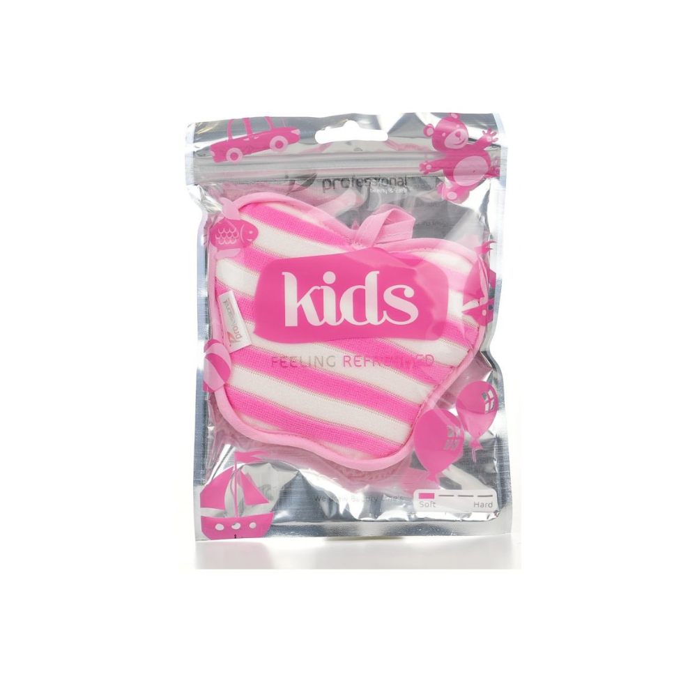 ليفة للاطفال بشكل التفاح مخططة باللون اللون الوردي الزاهي
