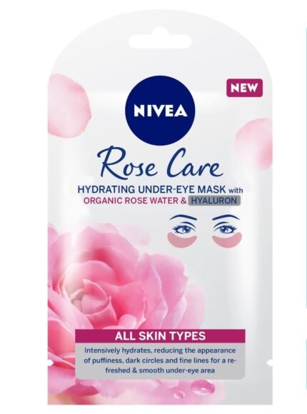 نيفيا، قناع تحت العين، لتخفيف الانتفاخات والهالات السوداء، بماء الورد والهيالورون – 1 قطعة